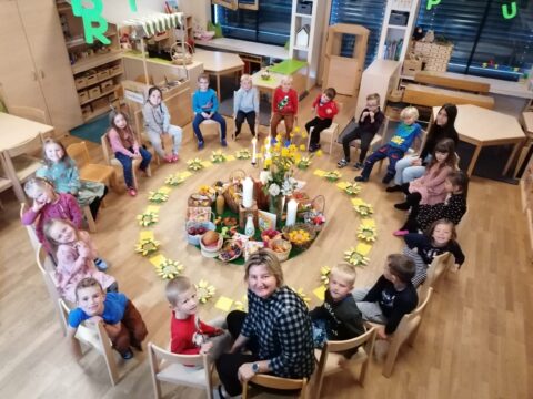 Jedes Jahr danken wir in der Riesenwelt bei einem kleinen Fest für die guten Gaben. Als Vorbereitung wurde Brot aus Maismehl gebacken, ein Erntedanklied und ein Gebet gelernt.
