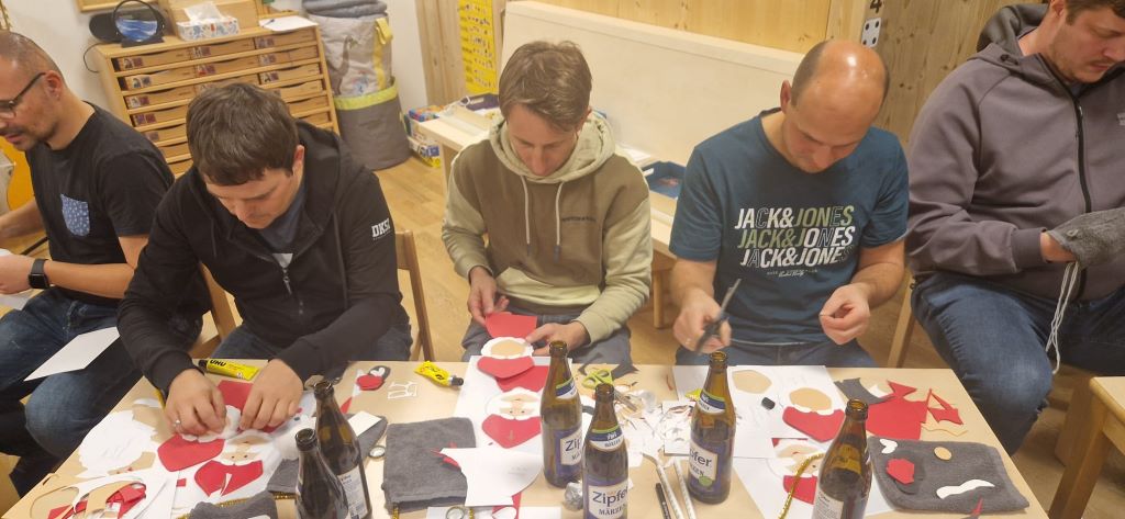 Alle Jahre wieder freuen sich unsere Papas auf diesen Abend. Nicht nur weil sie ihr “künstlerisches Talent” unter Beweis stellen können und ihren Kindern am nächsten Tag stolz ihren selbstgebastelten Nikolaus zeigen dürfen, sondern auch auf das anschließende gemütliche “Beisammensein”, oder wieder neue Leute kennenzulernen. So entstanden in den letzten Jahren auch öfters neue Kontakte untereinander, dies wiederum wirkte sich auch positiv auf das gemeinsame Dorfleben in Bad Häring aus.