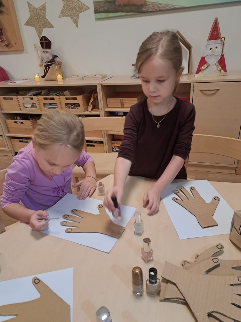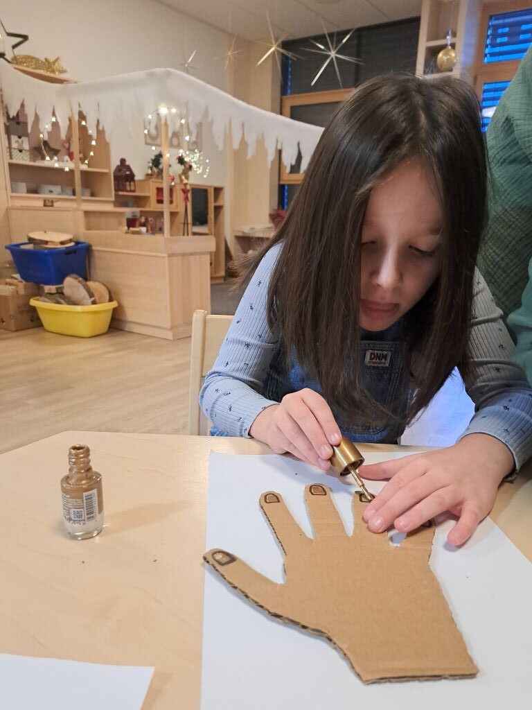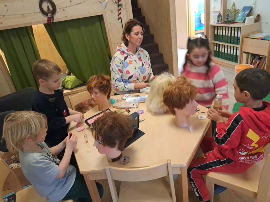 Zu Weihnachten entdecken die Kinder immer wieder, dass sich ihre Mamas oft besonders hübsch machen, sich öfters schminken, oder sich für eine Weihnachtsfeier die Nägel extra schön lackieren. Bei den Papas merken sie, dass sie mehr Haargel benutzen um ihr Haar zu stylen usw. All diese Eindrücke versuchen wir in einer kleinen “Schminknische” zu üben.